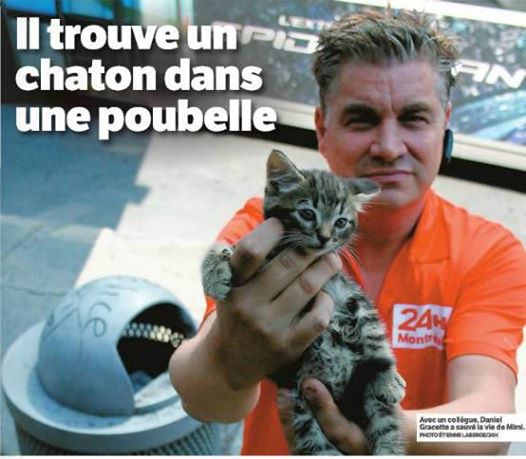 Montréal, juillet 2012, il trouve un chaton dans une poubelle