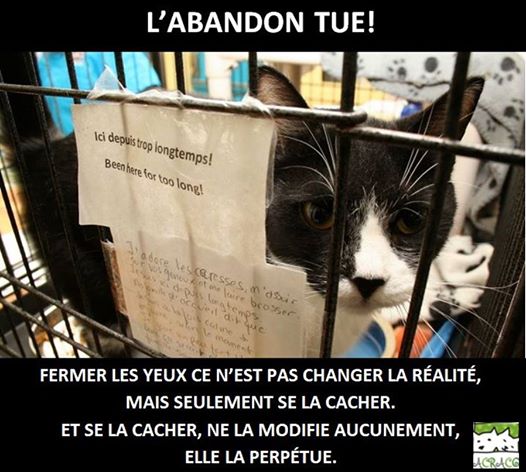Des abandons à la pelle en refuge et en fourrière lorsque les animaux ne sont pas lâchement abandonnés dans la nature, laissés à eux-mêmes. On estime à 1 700 000 chats errants au Québec seulement!